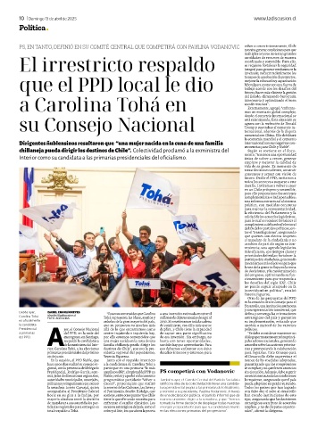 10 Domingo 13 de abril de 2025 www.ladiscusion.cl
