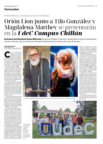 Que se interesen por la música que Tilo González y Magdalena Matthey participarán en la Escuela de Verano Udec 2025: Encuentros, Diálogos, Presencias. comunidad.