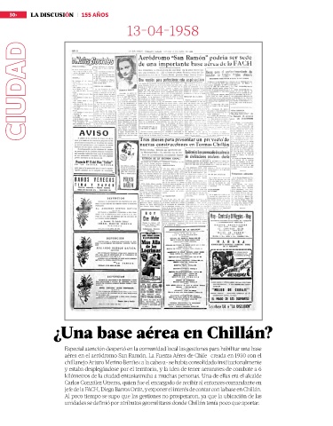 jefe de la FACH, Diego Barros Ortiz, y exponer el interés de contar con la base en Chillán.