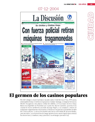 En 2004 dirigía la municipalidad el alcalde radical Aldo Bernucci Díaz, EFE estaba