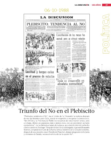 “Plebiscito: tendencia al No”, fue el titular de La Discusión la mañana después