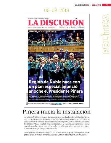 Jueves 6 de septiembre de 2018, Año 149, Nº 48.974. www.ladiscusion.cl El Diario de la Región de Ñuble