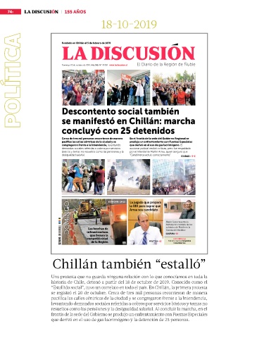 Domingo 20 de octubre de 2019, Año 149, Nº 49.381. www.ladiscusion.cl El Diario de la Región de Ñuble