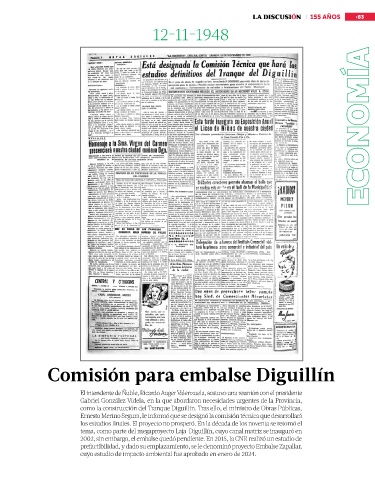 como la construcción del Tranque Diguillín. Tras ello, el ministro de Obras Públicas,