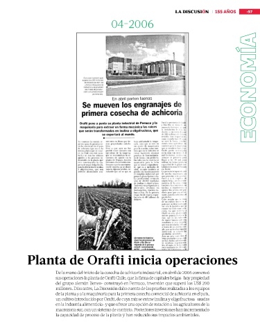 De la mano del inicio de la cosecha de achicoria industrial, en abril de 2006 comenzó
