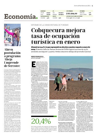 Erick Solo de Zaldívar, afirmó que “este contexto económico, había expecta- ocupación en Valle Las Trancas alcanzó un 63,4%. diciembre de 2024, anotando una