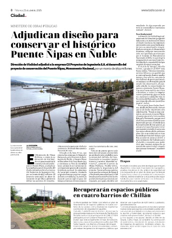 mático Puente Ñipas, al adjudicar local, además de ser testimonio de Obras Públicas, Freddy Jelves, El estudio considera una serie de etapas que incluyen