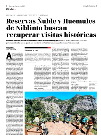 3.791 personas en la Reserva de Ñuble mejoras mediante recursos del pro- llegan a la unidad. Ellos registran la sidad presente”, sostuvo el ingeniero