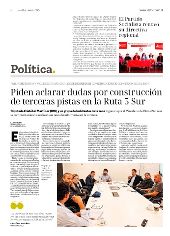 la futura ampliación de la Ruta 5 Sur, ser recibidos en Santiago para que los embargo, muchas veces esa informa- las obras, sino que también para que