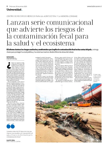El informe destaca los riesgos sanitarios y ambientales que implica la contaminación fecal en las costas del país y entrega