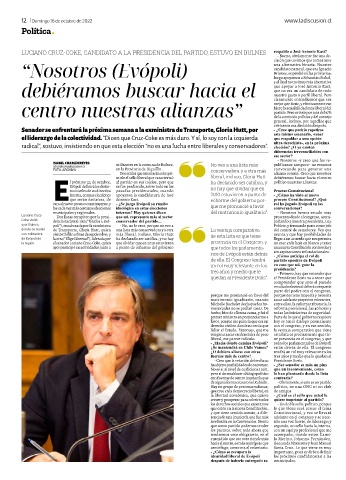 el liderazgo de la colectividad. “Dicen que Cruz-Coke es más duro. Y sí, lo soy con la izquierda este mismo escenario, -tener