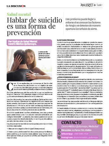de la Prevención del Suicido con el objetivo de crear de salvar vidas. Por lo mismo, no dudes en preguntar, en hacer verbal