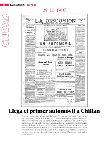 Llega el primer automóvil a Chillán