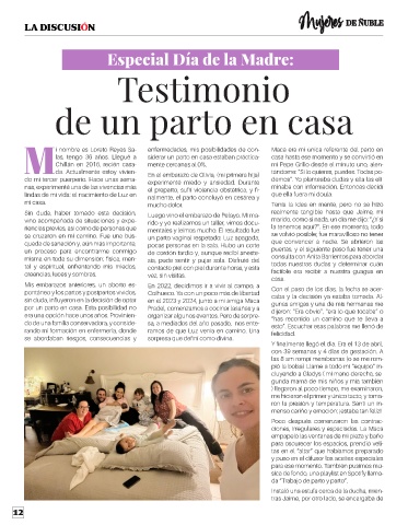 i nombre es Loreto Reyes Sa- enfermedades, mis posibilidades de con- Maca era mi única referente del parto en