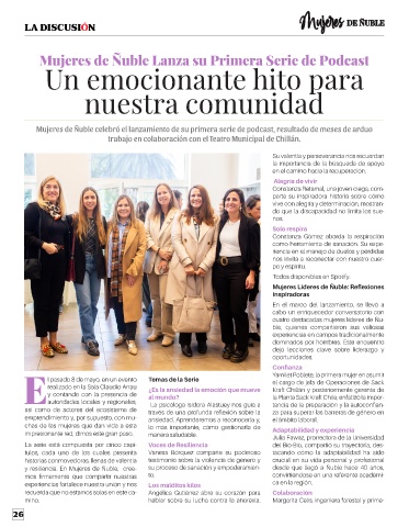 La serie está compuesta por cinco capí- Voces de Resiliencia del Bío-Bío, compartió su trayectoria, des-