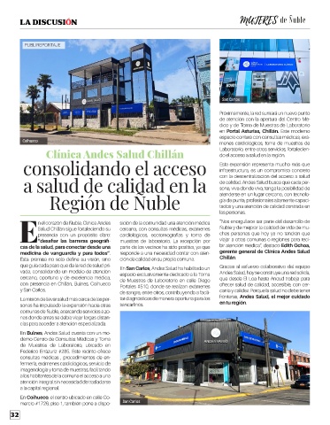 n el corazón de Ñuble, Clínica Andes sición de la comunidad una atención médica “Nos enorgullece ser parte del desarrollo de