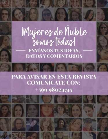 ¡Mujeres de Ñuble somos todas! ENVÍANOS TUS IDEAS, DATOS Y COMENTARIOS PARA AVISAR EN ESTA REVISTA COMUNÍCATE CON: +569 98024745