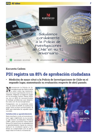 • Medición de mayo situó a la Policía de Investigaciones de Chile en el