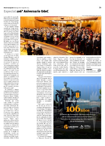 escenario a recibir su reco- dad de estudios; y simul- López Reguera, también Facultad de Educación. Lo versidad de Concepción».