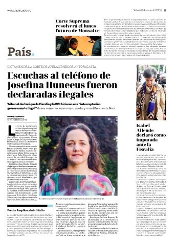 República don Gabriel Boric Font; y, La corte acogió el recurso de amparo presentado por la expareja de Alberto Larraín. Isabel Allende entregó unas escuetas
