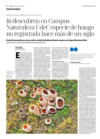 Universidad de Concepción, Dr. Götz El hallazgo se produjo en sep- le dio el nombre Peziza thaxteri en Recién en 2014 la volví a encontrar